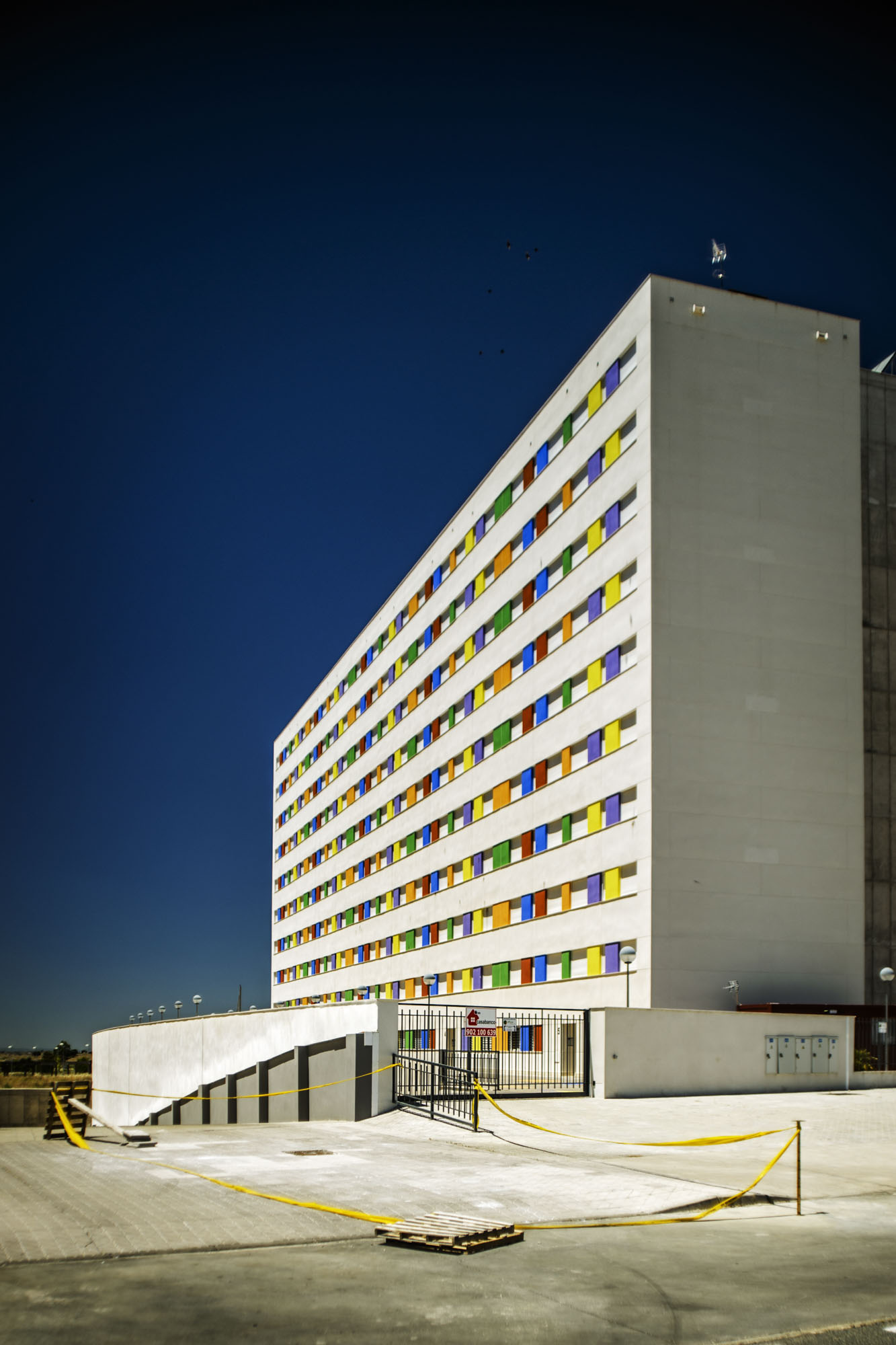 “El Junquillo” was to be a new, modern, and dynamic neighborhood in the outskirts of Cáceres, but due to bureaucratic problems with the local authorities, the few buildings that were built (one third of the total planned housing) were empty for several years. In 2013, the first families could finally move in, but in this block the vast majority of the apartments are still empty. Today, “El Junquillo” still lacks regular street maintenance and bus connection into the city.