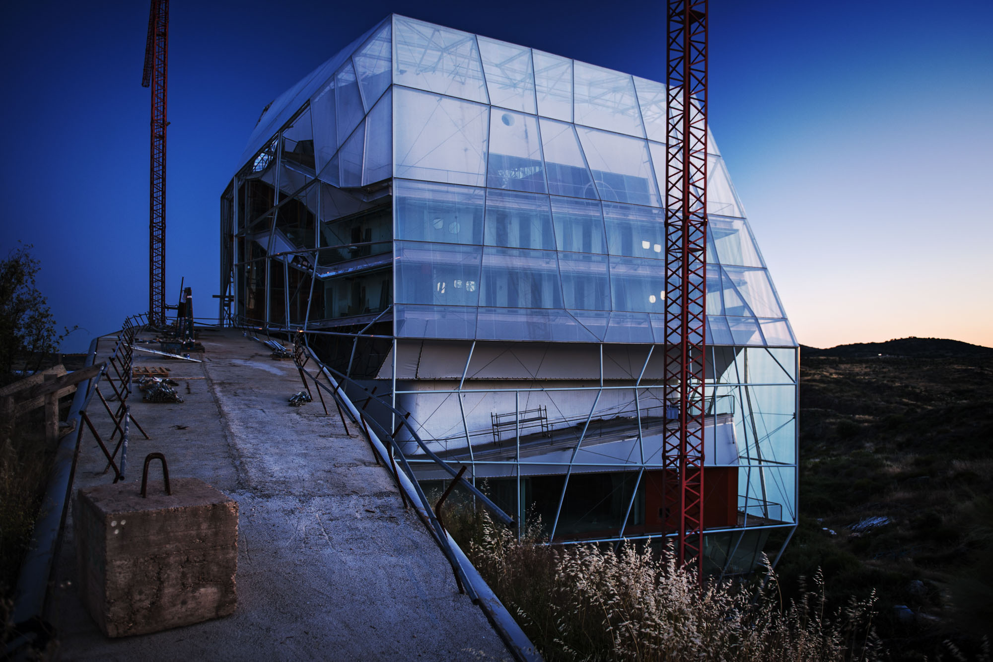 In order to prevent the project from being appealed by environmentalists, the regional government passed a special law to approve the construction of The City of the Environment. With sustainability as its leitmotif, the project comprised a technology park for 100 companies in the environmental sector, an industrial park focused on environmentally friendly activities, a convention center for 30,000 visitors/year, a hotel, a sports center, an archaeological site, a public river park, and 780 sustainable houses. In the parking lot, each of the 709 parking spaces would be equipped with charging points for electric vehicles (while in 2012, in the whole of Spain, only 484 electric cars were sold). When the works were stopped in 2013 due to financing problems, 52 million euros of public money had already been spent here. Its future has been compromised even more after the Spanish Constitutional Court ruled unconstitutional the law by which it was approved. In 2014, a court ruling stated that the complex was to be demolished, and the landscape restituted. Because the irony of it all is that the complex was built on virgin land that was “especially protected”.